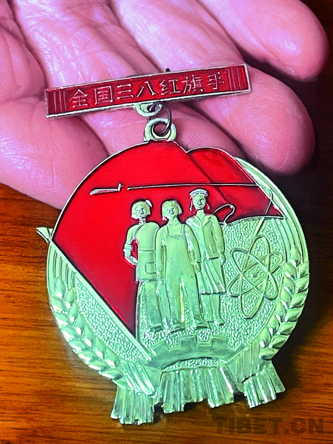 圖為巴西老人獲得的全國(guó)三八紅旗手獎(jiǎng)?wù)?/p>