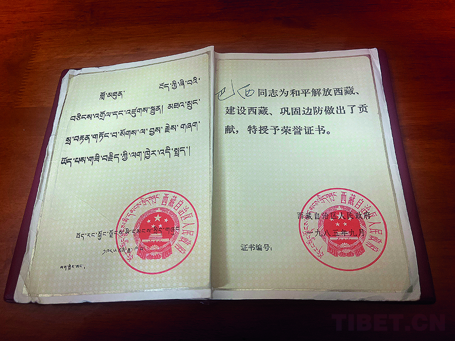 圖為西藏自治區(qū)人民政府授予巴西老人的證書(shū)