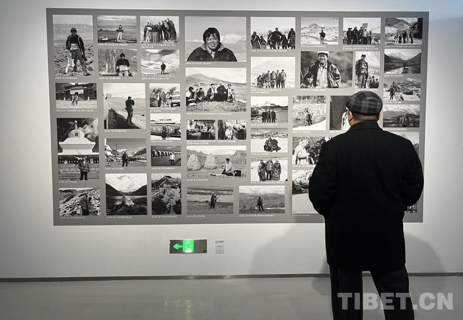 圖為觀眾觀看介紹李小可進(jìn)藏采風(fēng)經(jīng)歷的圖片展 攝影:王茜