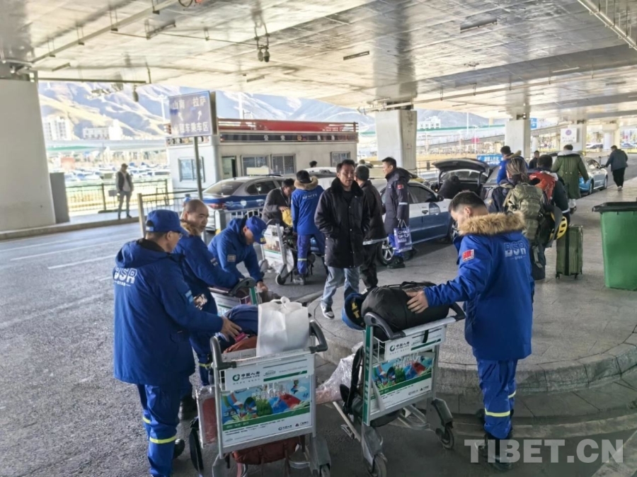 圖為西藏區(qū)局、西南空管局的黨員及青年突擊隊(duì)抵達(dá)定日機(jī)場 攝影:白瑪群宗