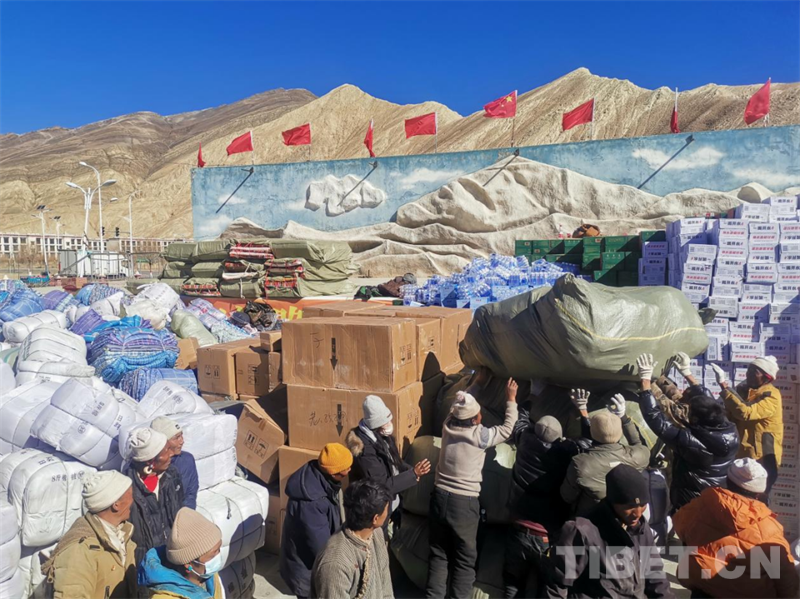 當(dāng)馳援物資到達(dá)長所鄉(xiāng)后,當(dāng)?shù)?/span>受災(zāi)群眾紛紛主動上前幫忙卸貨,感謝來自首都北京“老西藏”的惦念和支持。