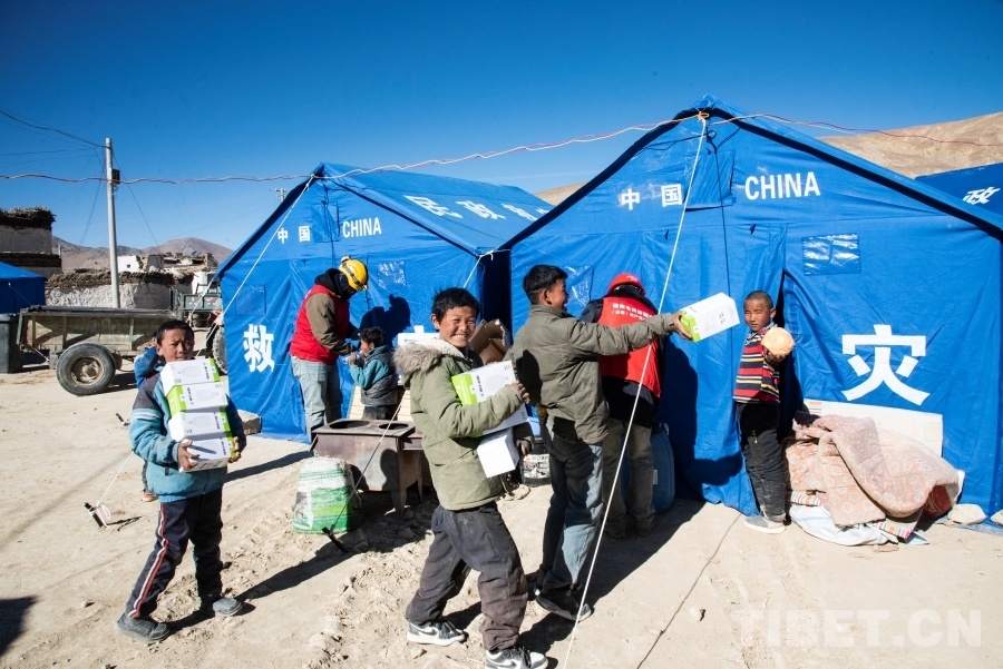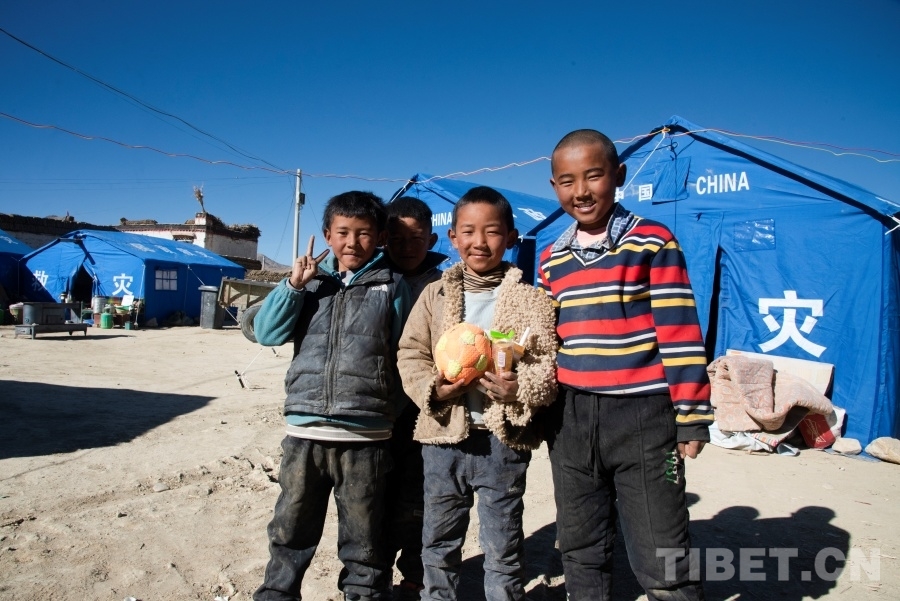 “我們家里的房子全部倒塌了,但好在沒人受傷。”“吃飯、睡覺都沒有任何問題,就是帳篷里還沒有通電?!薄叭绻軌蛟S一個愿望,我希望這場地震沒有發(fā)生。”措昂村的小男孩們將腳下的足球“按下暫?!?,向記者講述著他們受災(zāi)三天的生活情況。三名穿著紅馬甲的救災(zāi)人員走進(jìn)安置點,小男孩們迅速將他們圍了起來。