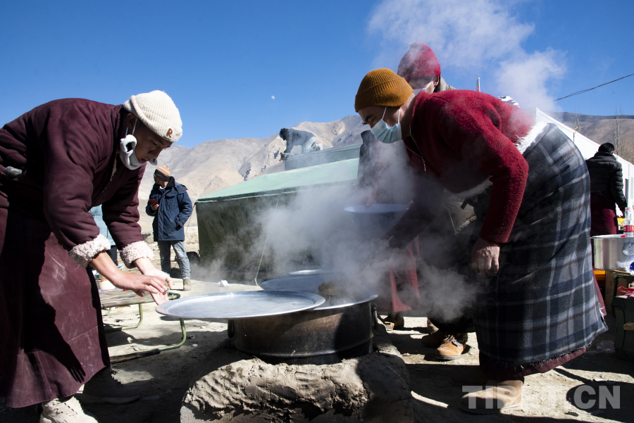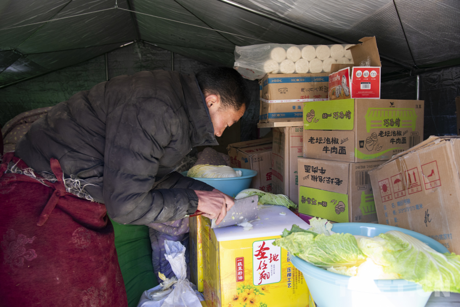 “輕傷的僧尼在我們縣醫(yī)院就診,重傷的僧尼我們第一時間就已轉(zhuǎn)運至日喀則市人民醫(yī)院,其余的僧尼我們于地震當日就已搭建好帳篷統(tǒng)一在森嘎曲德寺旁的空地進行安置?!痹谑転纳岚仓命c,一間間活動板房整齊排列,僧尼們正在點柴燒水、切大白菜,為今日午餐做準備。