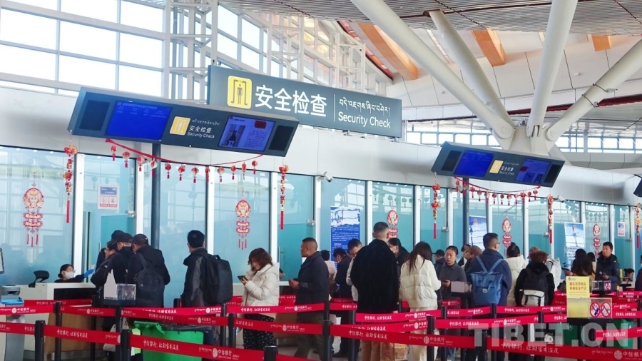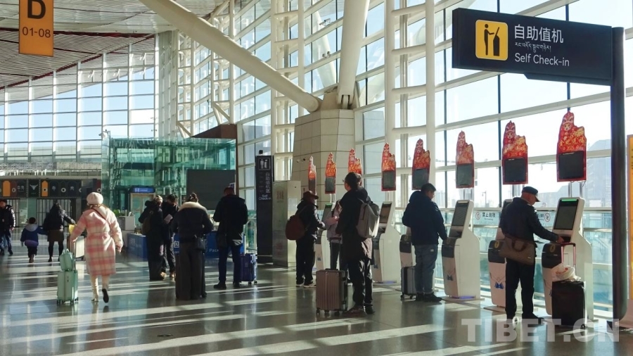 圖為春運(yùn)首日的拉薩貢嘎國際機(jī)場