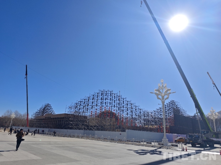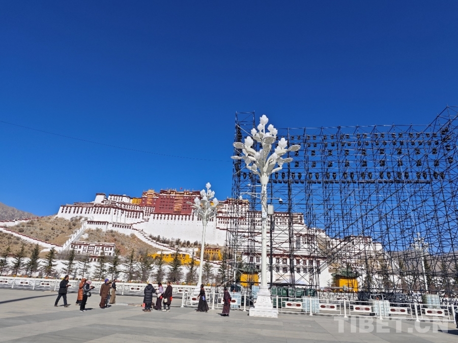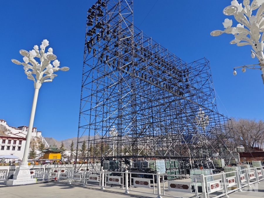 圖為布達拉宮廣場的春晚分會場布置現場 攝影:趙婧茹
