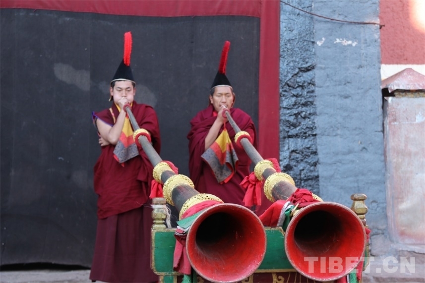 圖為迎請(qǐng)護(hù)法神像之前,薩迦寺院內(nèi)的儀式 攝影:王妍丹