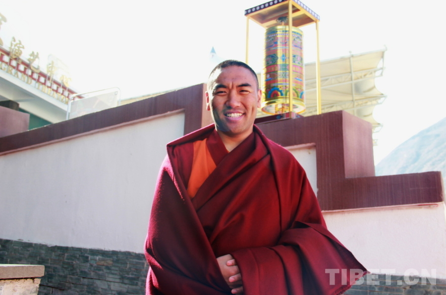 圖為四川省阿壩州九寨溝縣達(dá)吉寺的高級(jí)經(jīng)師、中國(guó)藏語(yǔ)系高級(jí)佛學(xué)院首批“拓然巴”高級(jí)學(xué)銜獲得者之一王杰澤然接受采訪(fǎng) 攝影:張家文