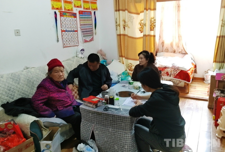 圖為四川省阿壩州九寨溝縣南坪鎮(zhèn)南坪社區(qū)黨支部書(shū)記曹玉珍(左三)到社區(qū)居民家中走訪(fǎng)(曹玉珍供圖)