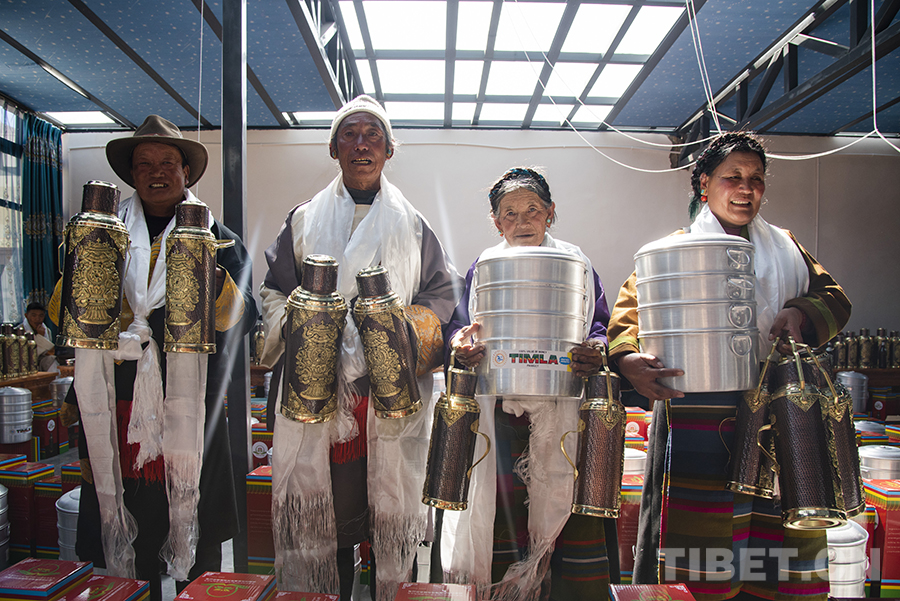 “因受地震的影響,今年的分紅儀式與以往相比簡單一些。我們村兩委經(jīng)過商議,決定用今年的村集體收入為每戶購置多功能蒸鍋、銅壺等作為‘分紅’。一方面,因為大家現(xiàn)在都在安置板房里生活,這些物品對于村民來說實用性更強;另一方面,銅壺也有一定的裝飾作用,為村民簡單的板房內(nèi)增添了一份像樣的‘家具’。”村黨支部書記旺加布說。