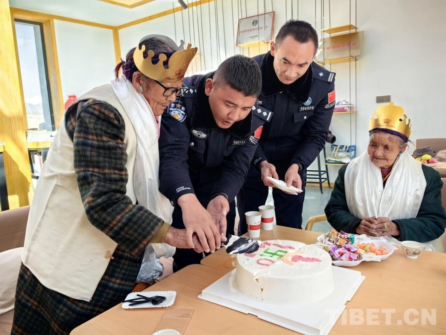 活動中,警民攜手為老人們精心準備了一場慶祝派對,邊防民警、社區(qū)兩委班子成員、駐村工作隊隊員為老人獻上祝福的歌曲,定做精美的蛋糕,穿上代表高壽的藏式服裝等,并與老人們嘮家常,傾聽他們的生活故事和需求。