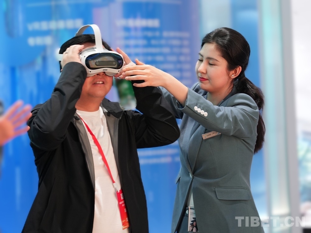 圖為西藏自治區(qū)民營企業(yè)家學習參觀團成員體驗VR 攝影:王茜