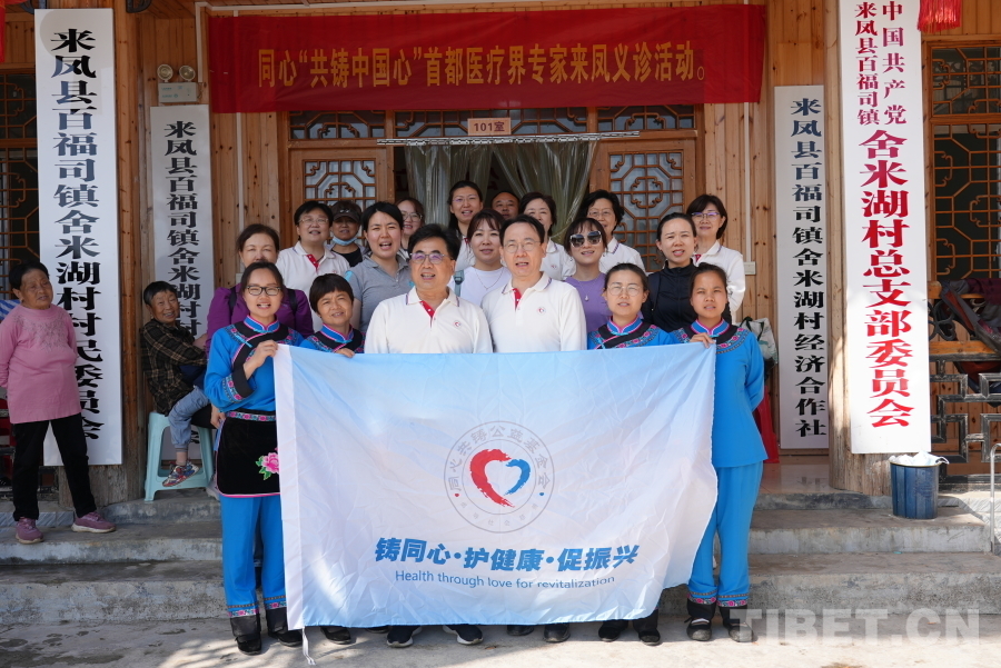 中國西藏網訊 4月19日,"同心·共鑄中國心"大型公益醫(yī)療活動走進湖北省恩施土家族苗族自治州來鳳縣。來自北京的多位醫(yī)療專家深入百福司鎮(zhèn)舍米湖村,為當?shù)厝罕婇_展健康義診服務?;顒蝇F(xiàn)場,專家們通過一對一問診、疾病篩查和健康指導等方式,為村民提供全方位醫(yī)療服務,重點針對山區(qū)常見的高血壓、糖尿病等慢性病進行專業(yè)評估,并制定個性化防治方案。(中國西藏網 記者/蘇洋)