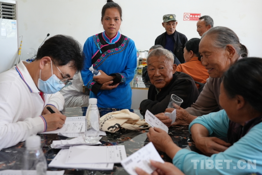 圖為趙勇醫(yī)生正在為群眾看診 攝影:蘇洋