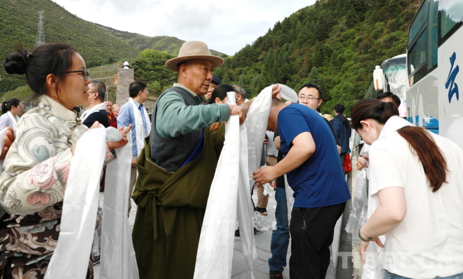 圖為5月15日,部分參加“同心·共鑄中國心”2025阿壩行大型公益活動的醫(yī)務(wù)志愿者抵達(dá)四川省阿壩州馬爾康市。馬爾康市群眾向醫(yī)務(wù)志愿者們敬獻(xiàn)哈達(dá) 攝影:劉莉