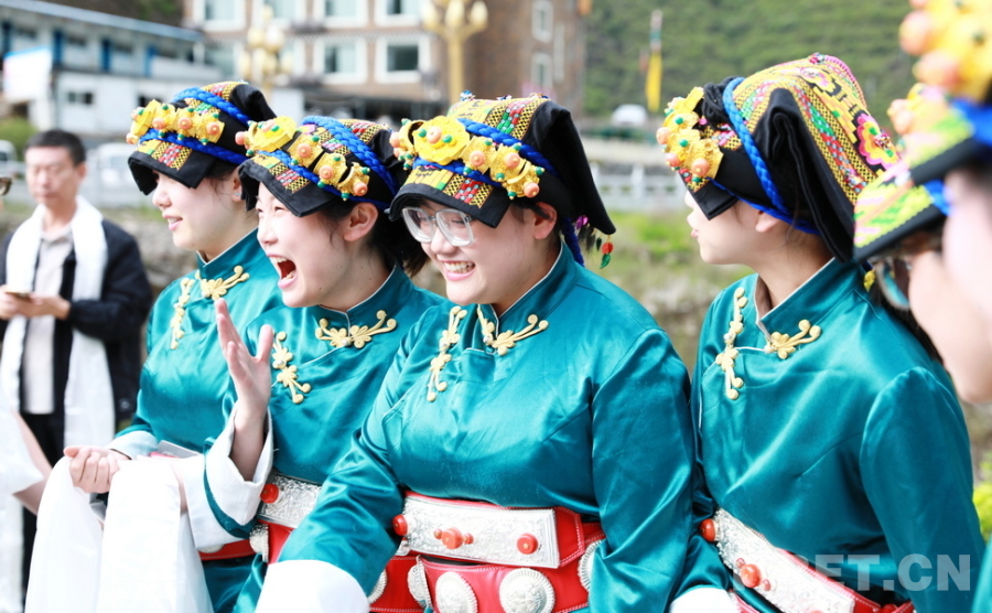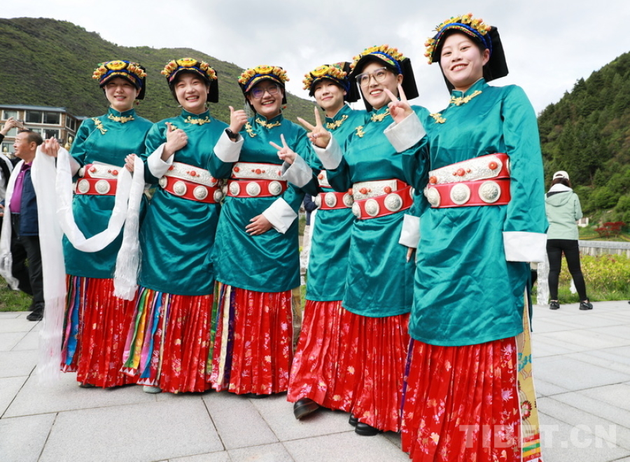 圖為身著嘉絨藏族盛裝的四川省阿壩州女孩們迎接“同心·共鑄中國心”大型公益活動醫(yī)務(wù)志愿者們的到來 攝影:劉莉