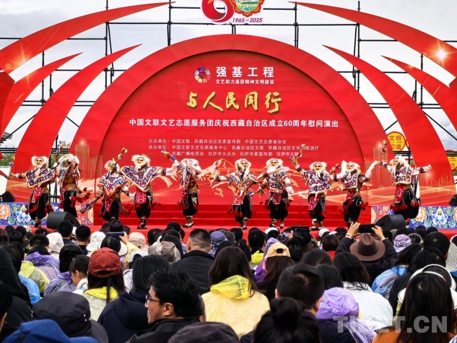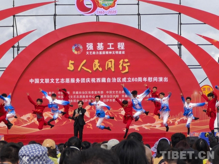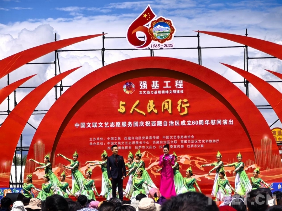 兩個(gè)多小時(shí)的演出中,藝術(shù)家們的精彩表演贏得全場觀眾陣陣喝彩和熱烈掌聲。整臺(tái)演出節(jié)目編排新穎、銜接流暢、陣容強(qiáng)大,優(yōu)秀歌舞與新創(chuàng)佳作交相輝映,向全區(qū)各族干部群眾送去了中國文藝志愿者的美好祝福,為喜迎西藏自治區(qū)成立60周年?duì)I造了喜慶熱烈、歡樂祥和的節(jié)日氛圍。(中國西藏網(wǎng) 記者/王淑 趙釗)