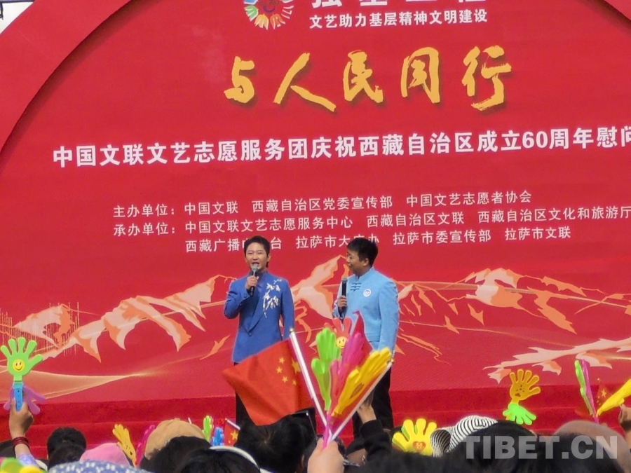 圖為5月25日,中國文聯(lián)文藝志愿服務(wù)團(tuán)慶祝西藏自治區(qū)成立60周年慰問演出中相聲表演 攝影:王淑