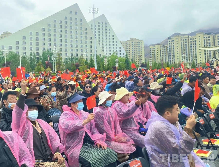 中國西藏網(wǎng)訊 5月25日上午,由中國文聯(lián)、西藏自治區(qū)黨委宣傳部、中國文藝志愿者協(xié)會(huì)共同主辦的慶祝西藏自治區(qū)成立60周年慰問演出“與人民同行”在拉薩會(huì)展中心廣場舉行,4000多名干部群眾一同觀看演出。