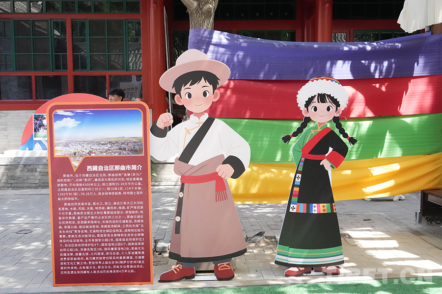 圖為中華民族共同體體驗(yàn)館內(nèi),那曲市輪展現(xiàn)場(chǎng)的人形立牌 攝影:周晶