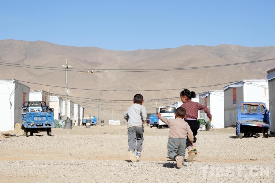 圖為日喀則市定日縣長(zhǎng)所鄉(xiāng)雜村安置點(diǎn),孩子們正在嬉戲打鬧 攝影:邊子捷