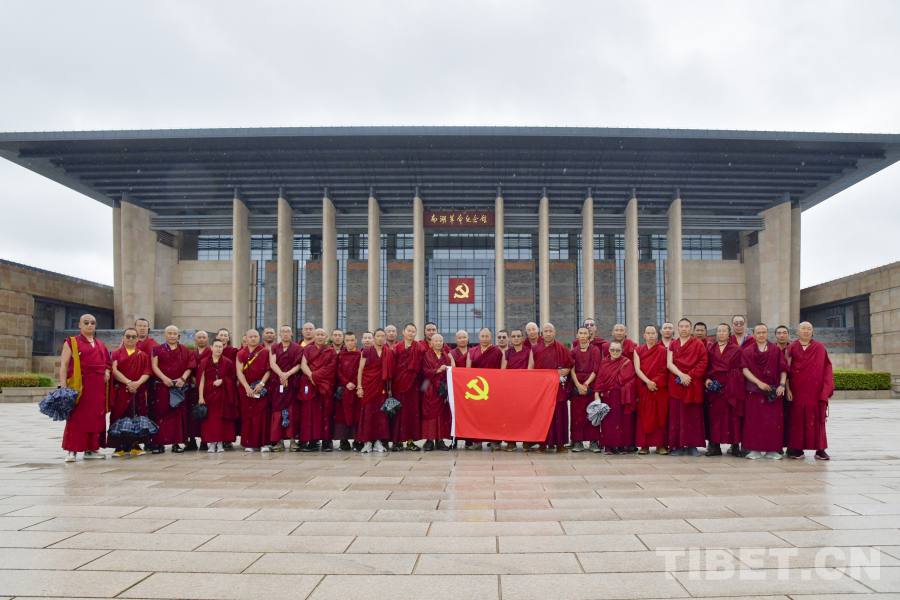 中國西藏網(wǎng)訊 清晨的浙江嘉興南湖煙雨朦朧,來自西藏佛學(xué)院的師生們著紅色僧裝駐足于紅船畔,聆聽講解員動情講述1921年夏日的那場歷史性會議?!熬褪窃谶@樣一艘小船上,代表們通過了黨的第一個綱領(lǐng)和決議,莊嚴宣告中國共產(chǎn)黨的誕生?!睕]有中國共產(chǎn)黨就沒有新中國,沒有中國共產(chǎn)黨也就沒有社會主義新西藏。從浙江嘉興紅船到上海中共一大會址,西藏佛學(xué)院師生們重走“一大”路,重溫黨的歷史,感受中國共產(chǎn)黨領(lǐng)導(dǎo)下西藏發(fā)展進步、人民幸福安康的偉大精神力量。
