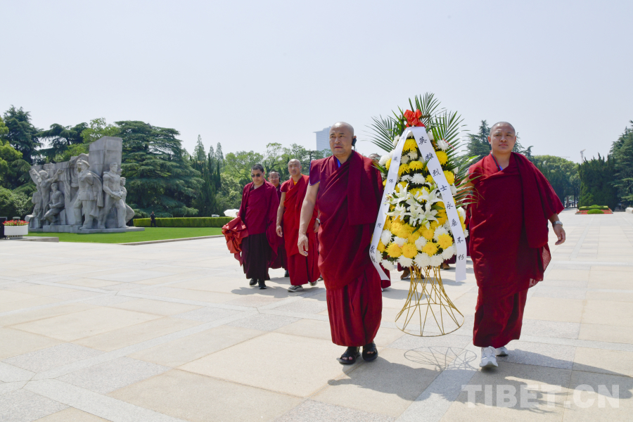 圖為在龍華烈士陵園西藏佛學(xué)院師生為革命先烈敬獻花籃 攝影:趙振宇