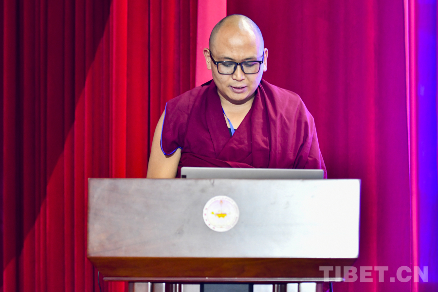 來自西藏佛學院的經師阿旺桑珠作了題為《著<辨了不了義論>的歷史背景及其影響》的報告,以探討《辨了不了義論》的創(chuàng)作環(huán)境與歷史背景為起點,論述該經典從主題到用語,都以推動藏傳佛教健康發(fā)展為出發(fā)點,承擔起從了義、不了義角度闡釋佛教教義的重任,填補了藏傳佛教此前沒有相關著作的空白。