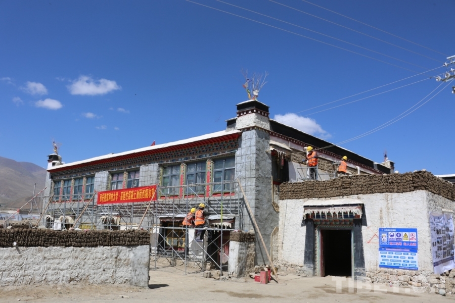 圖為日喀則市拉孜縣錫欽鄉(xiāng)崗西村,民房正在進行維修加固