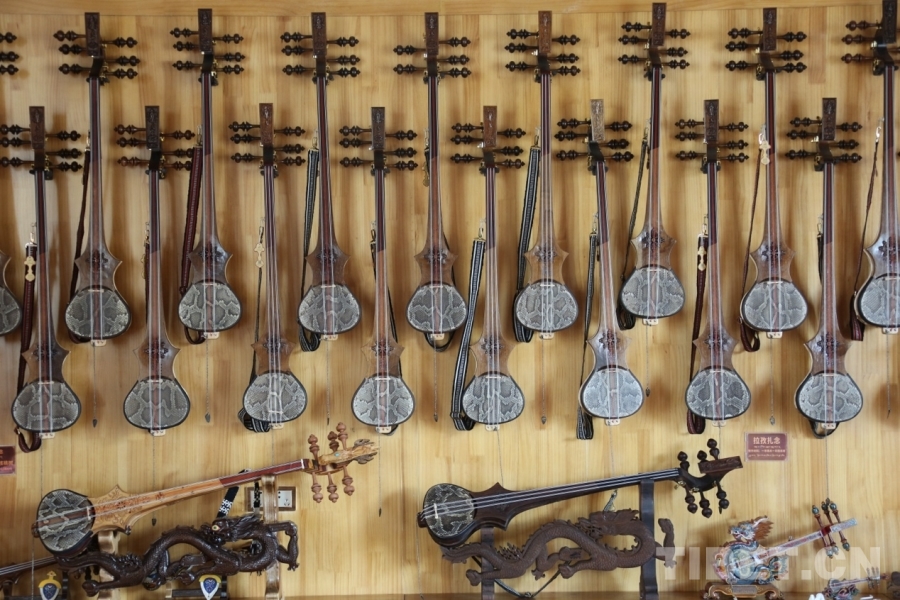 作為“堆諧之鄉(xiāng)”拉孜縣的代表性樂(lè)器,扎念琴制作已有數(shù)百年歷史。合作社負(fù)責(zé)人頓加介紹,一把純手工扎念琴需選用楊木做共鳴箱、花梨木制琴桿,經(jīng)過(guò)刨削、雕鏤、蒙皮等20余道工序,一個(gè)人耗時(shí)6天左右方能完成。“琴頭雕馬象征吉祥,背面‘巴絡(luò)'凸紋既美觀又防滑,這些都是祖輩傳下的智慧?!比缃?,這項(xiàng)非遺技藝通過(guò)“致富帶頭人+合作社+農(nóng)戶”模式,年生產(chǎn)扎念琴超500把,帶動(dòng)社員人均年收入達(dá)4.5萬(wàn)元。