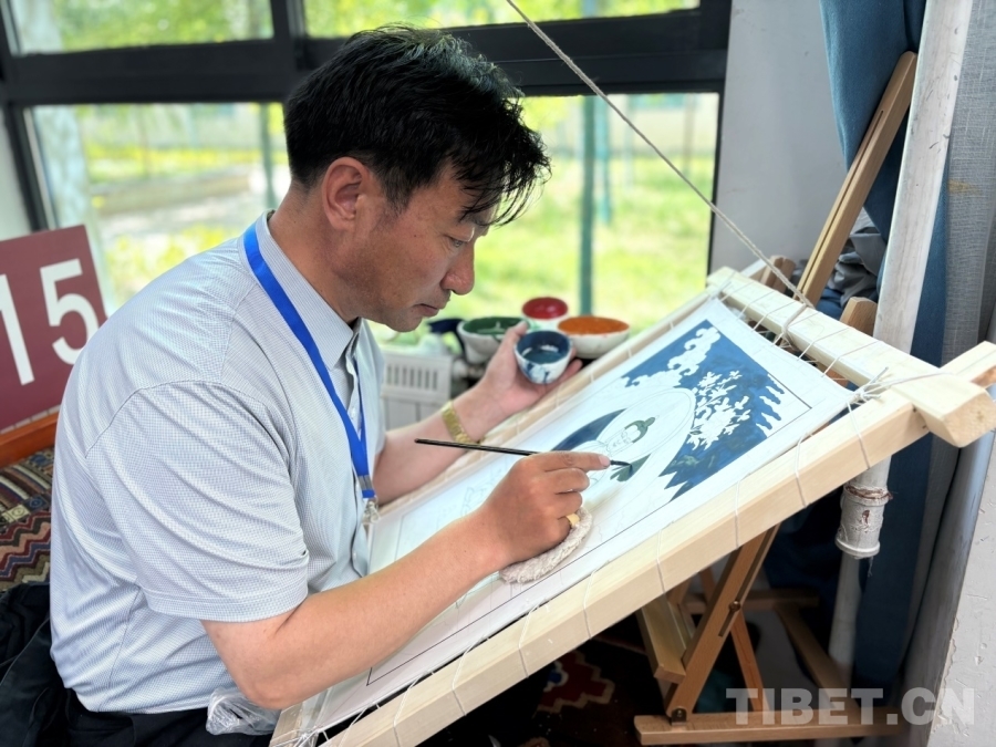 圖為唐卡繪制大賽現(xiàn)場(chǎng)