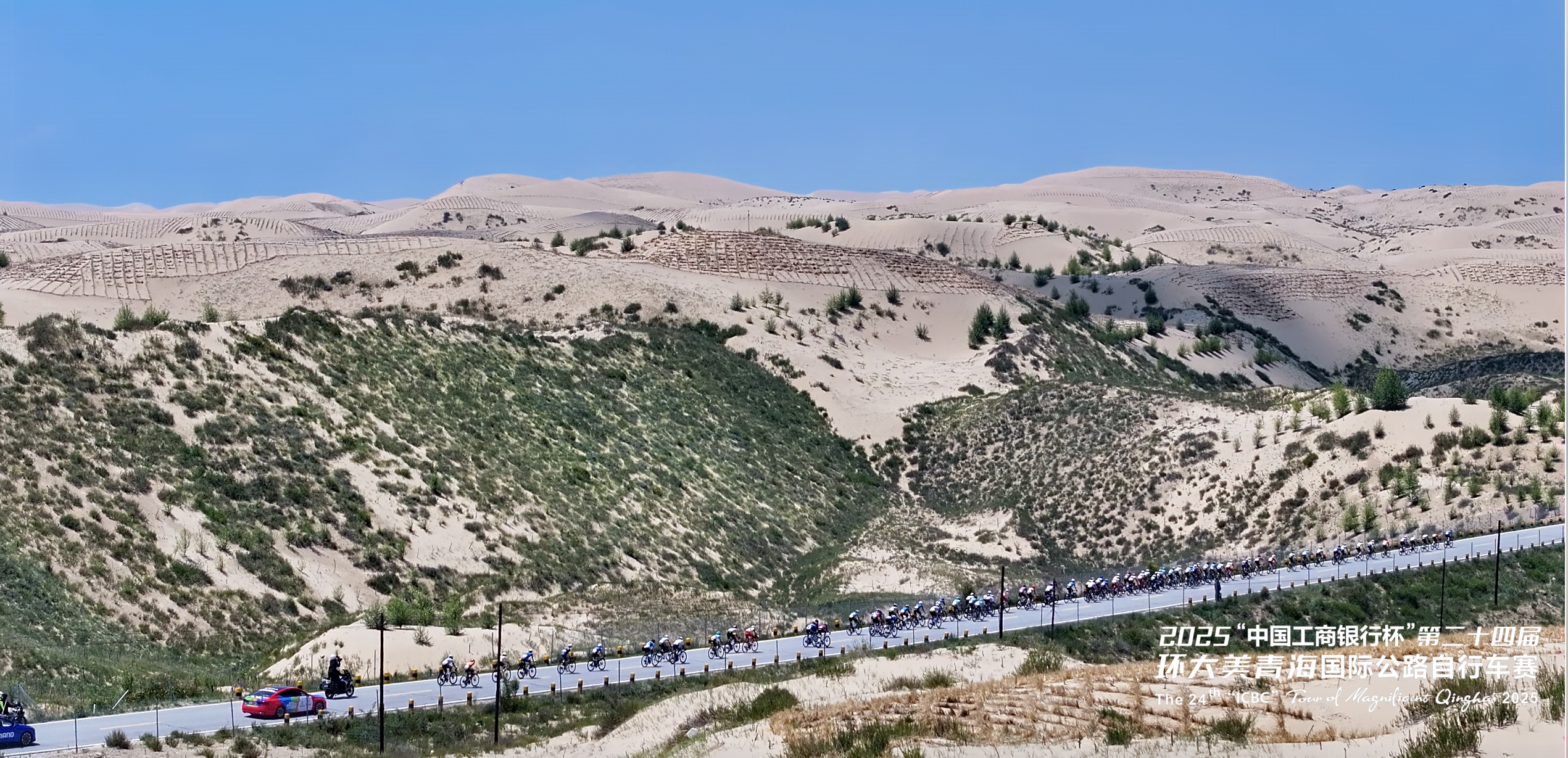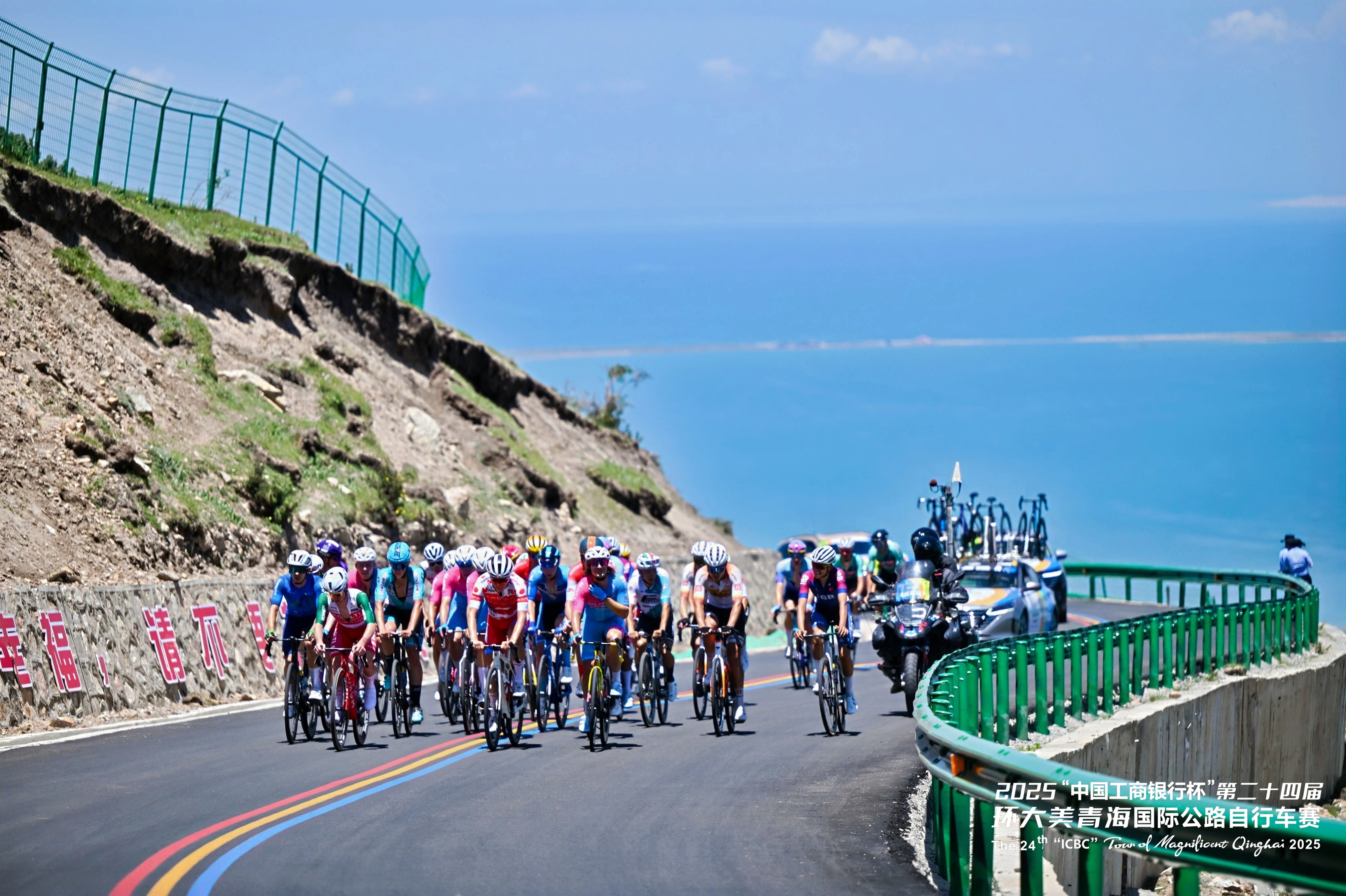 第二十四屆環(huán)青賽第六賽段——剛察-共和賽段,是本屆賽事距離最長的賽段。車隊(duì)出發(fā)后不久便駛?cè)胫沫h(huán)湖公路,這段標(biāo)志性賽程承載著環(huán)青海湖賽事的精髓和回憶。作為環(huán)青賽的前身,環(huán)湖賽段以其獨(dú)特魅力吸引著全球騎行愛好者,人們沿著賽事路線打卡騎行,盡情領(lǐng)略青海湖畔的壯美風(fēng)光。