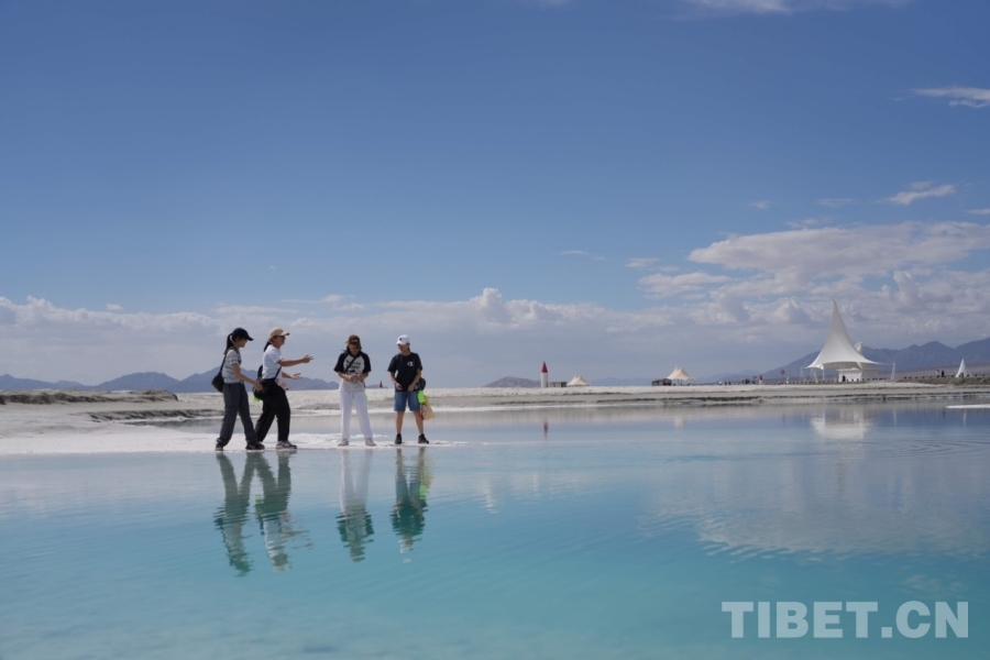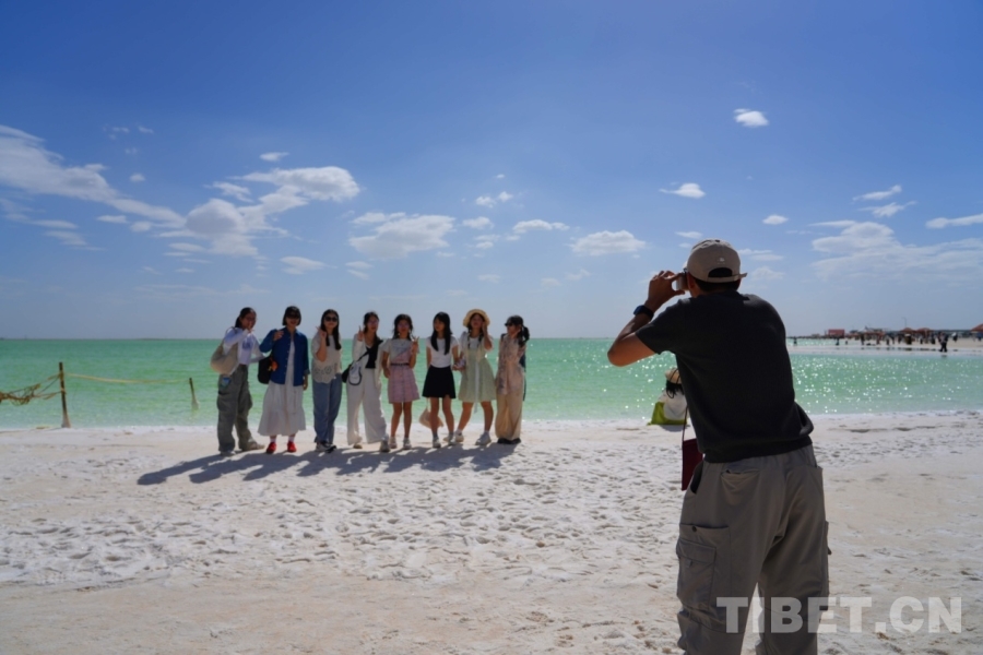 在海西蒙古族藏族自治州格爾木市,海拔2670米的察爾汗鹽湖,翠綠之美令人震撼,風(fēng)起波動(dòng),湖面如碎鉆鋪就的星河;天然形成的鹽花形態(tài)各異宛如珊瑚叢生,在陽光下,閃耀著璀璨的光芒;浮在鹵水上的“萬丈鹽橋”延伸至天際,橫跨湖面,還有周邊的現(xiàn)代化采鹽船,輸鹵管道,車來車往,工業(yè)設(shè)施與自然景觀形成強(qiáng)烈對(duì)比。來自妙法寺劉金龍中學(xué)三位女生欣賞著美景,也紛紛討論這次令人驚嘆的“自然課堂”。鐘澄情同學(xué)不自禁感慨:“這里跟網(wǎng)上宣傳的一樣美!就像是上帝打翻的蘋果汁?!痹袂缤瑢W(xué)驚嘆道:“曾經(jīng)我只聽說過茶卡鹽湖,來到這里才知道察爾汗鹽湖是中國最大、世界第二大的鹽湖,面積相當(dāng)于56個(gè)茶卡鹽湖,鹽儲(chǔ)量可以讓全球80億人吃上兩千年?!倍S馨月同學(xué)更加震撼這里工業(yè)與自然相互交融的獨(dú)特魅力,直呼這是一座真正的“寶庫”!