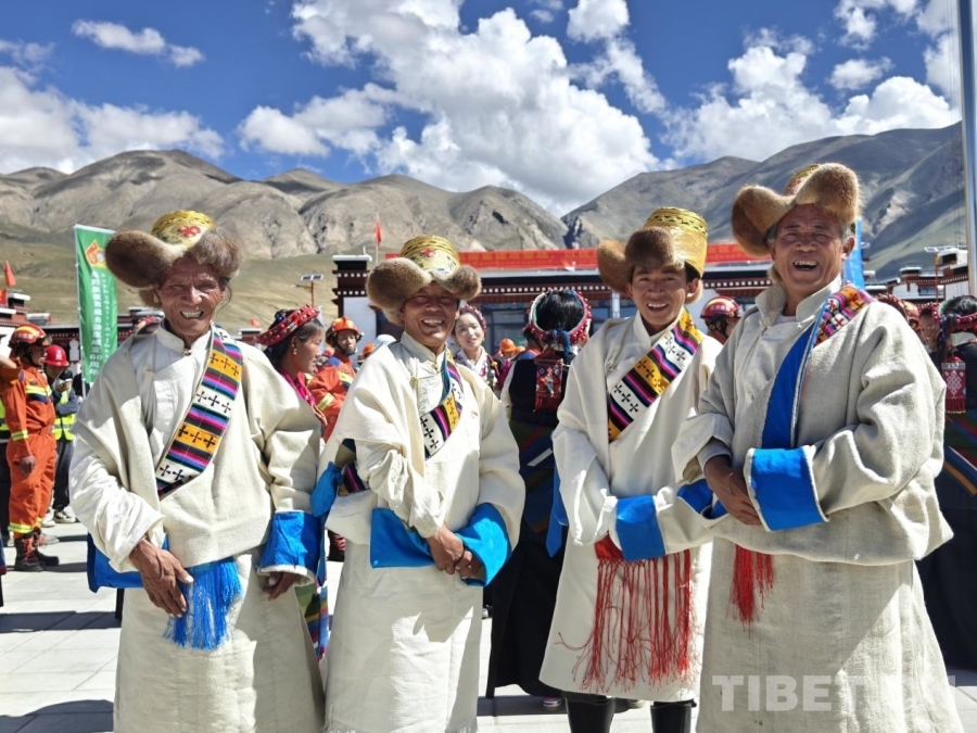 圖為儀式現(xiàn)場,身著定日傳統(tǒng)服飾的村民正在合影留念