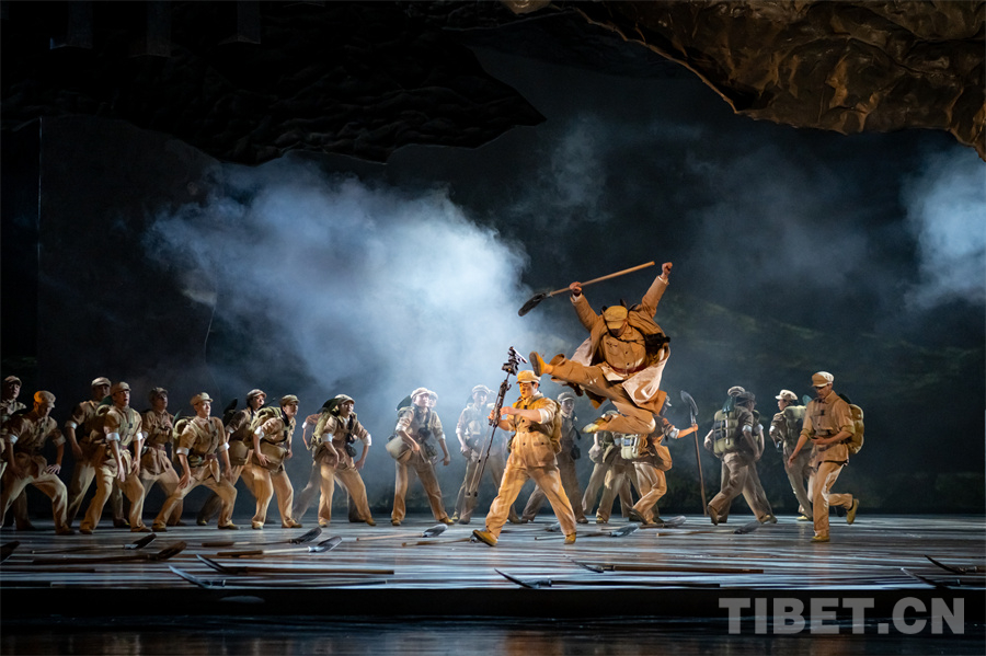 《昆侖問道》以青藏公路建設(shè)為宏大背景,講述了道班工人一家三人在時代浪潮中守護(hù)這條生命線的傳奇故事。通過當(dāng)代舞語匯與現(xiàn)實(shí)主義敘事的創(chuàng)新融合,以極具爆發(fā)力的肢體語言和時空交錯的舞臺呈現(xiàn),生動再現(xiàn)“一鍬一鎬筑天路”的艱苦卓絕和“一代一代守天路”的初心使命,讓跨越七十載的信仰力量直抵人心。