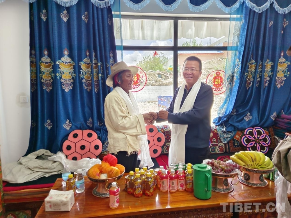 圖為榮貢村舉行定日6.8級(jí)地震災(zāi)后恢復(fù)重建民房首批入住儀式