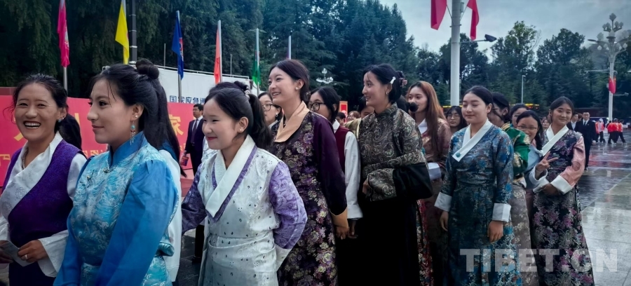 圖為西藏藏醫(yī)藥大學(xué)師生入場 攝影:劉莉