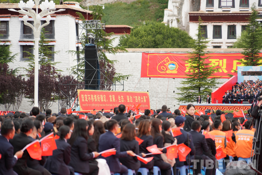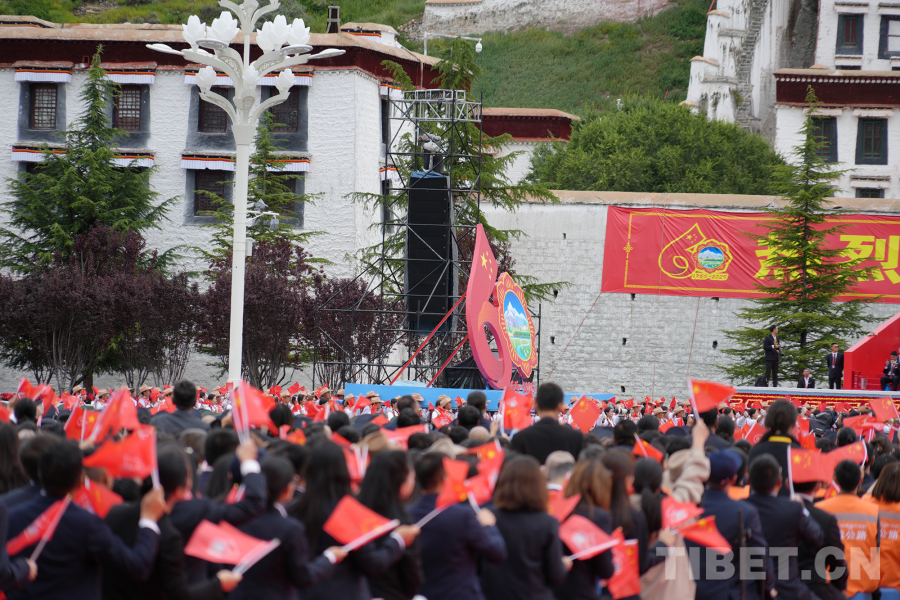 中國(guó)西藏網(wǎng)訊 西藏自治區(qū)成立60周年慶祝大會(huì)于8月21日上午10時(shí)在拉薩隆重舉行。伴隨著歡快的音樂,熱烈歡騰的群眾游行在“旗幟引領(lǐng)”彩車的帶領(lǐng)下正式開始。(中國(guó)西藏網(wǎng) 記者/王淑 馮重霖 劉莉 趙釗 姚浩然 楊眉笑 德吉卓瑪 趙振宇 賈華加 邊子捷 次旦拉姆 旦曲)