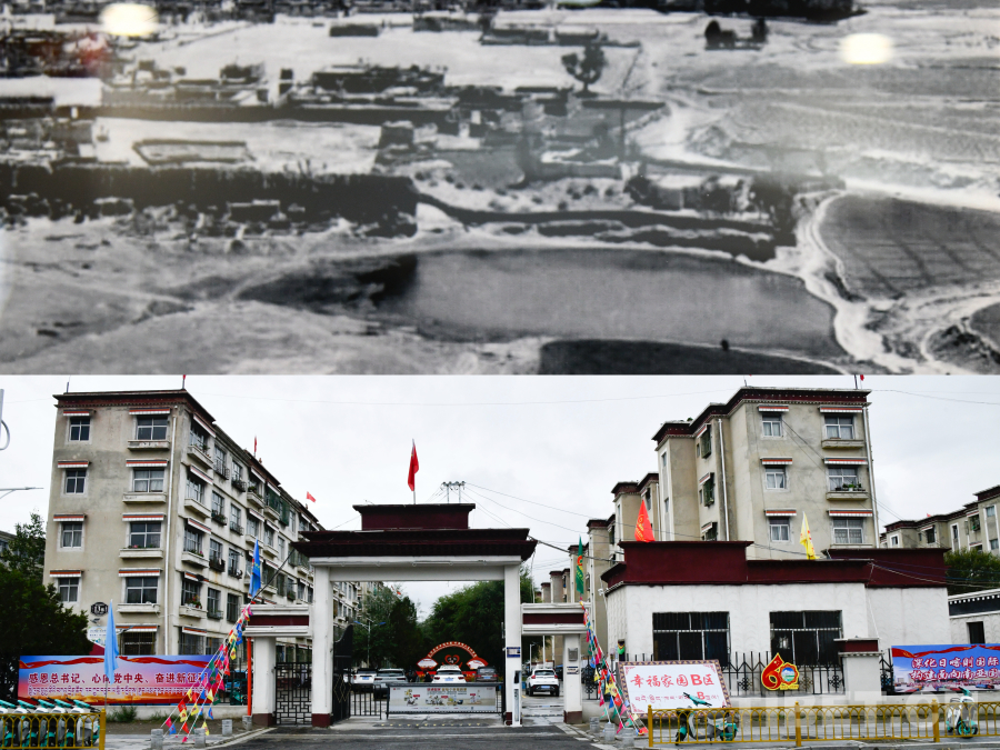 在幸福社區(qū)內(nèi),有一個(gè)社區(qū)記憶館,這里的一張張圖片,都反映出了幸福社區(qū)居民生活的巨大變化?!坝捎谖覀兊木用袷前徇w而來,所以在這里并沒有土地資源。通過政府強(qiáng)基惠民的資金投入,我們?cè)谏鐓^(qū)閑置的土地上建設(shè)了商品房,開發(fā)了停車場。在這短短的十余年時(shí)間里,我們社區(qū)集體經(jīng)濟(jì)收入從無到有,2024年突破61.5萬元;城鎮(zhèn)居民人均可支配收入達(dá)47396元,相比建社區(qū)初期大幅躍升;困難群體保障戶從421戶減至13戶,縮減比例高達(dá)96.9%。”德吉措姆自豪地向我們講述著這里的變化。