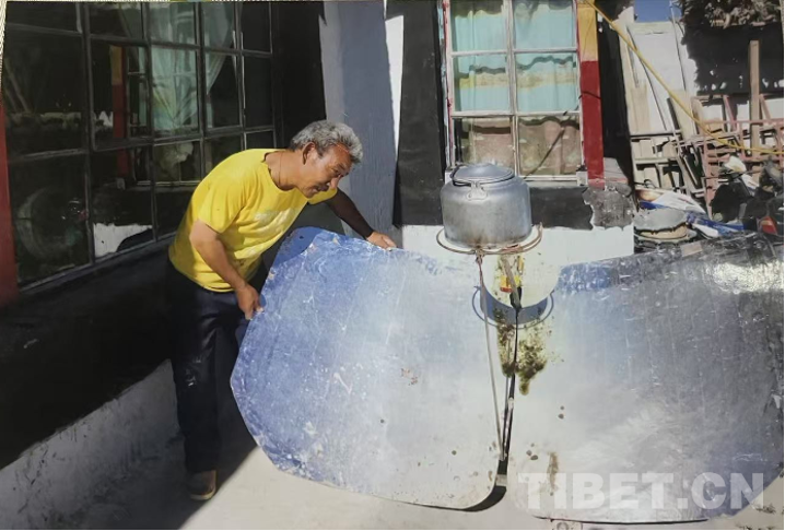 這個(gè)是太陽灶,大概是2000年左右,基本上每家每戶都有一臺。我們屬于半農(nóng)半牧,生火用木材,消耗很大。有了這個(gè)太陽灶后,不用木料,而且也很方便。但由于存在火災(zāi)隱患,后來就沒用。我們現(xiàn)在住的這套房子是2018年新建的,照片中的是2018年前的房子。