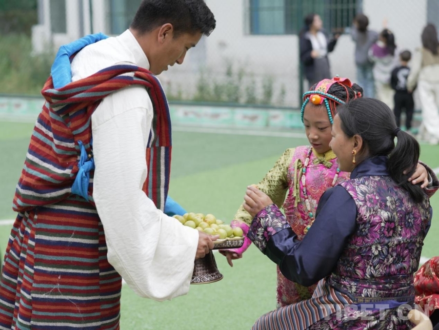 大家圍坐交流,家長們細致講述藏裝配飾的象征意義,孩子們認真聽著縣群團工作部老師講述節(jié)日傳說。在服飾走秀環(huán)節(jié),藏族少女白瑪央吉牽著妹妹的手款款走來,盡顯藏族服飾的華美與端莊;鍋莊舞表演時,人們手拉手,舞步踏響同一節(jié)奏。品嘗特色美食時,亞東李子、奶渣、鮭魚罐頭等特色美食登臺亮相。支教團成員與家長化身“美食代言人”,盡情分享美食,樂在其中。