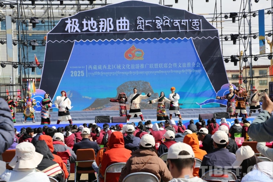 活動(dòng)開始前,現(xiàn)場(chǎng)播放了昌都、那曲、阿里及相關(guān)縣(區(qū))的文化旅游宣傳片。昌都市與那曲市先后登臺(tái)推介本地文化旅游資源,昌都重點(diǎn)展示了茶馬古道、三江并流以及芒康鹽井等獨(dú)特資源;那曲則聚焦于羌塘草原、納木錯(cuò)圣象天門、薩普景區(qū)以及格薩爾史詩(shī)等核心資源,彰顯了“極地那曲”的無(wú)限魅力。索縣、申扎、尼瑪三縣從微觀視角推介縣域特色——索縣的贊丹雪、穹雄溝、申扎縣的色林錯(cuò)、尼瑪縣的當(dāng)惹雍錯(cuò)等人文風(fēng)光,進(jìn)一步豐富了藏西北文旅的內(nèi)涵。舞蹈《古韻》,《非遺服飾秀》、歌曲《年輕的城市》《請(qǐng)到那曲走一走》一次次將聯(lián)席會(huì)推向高潮。