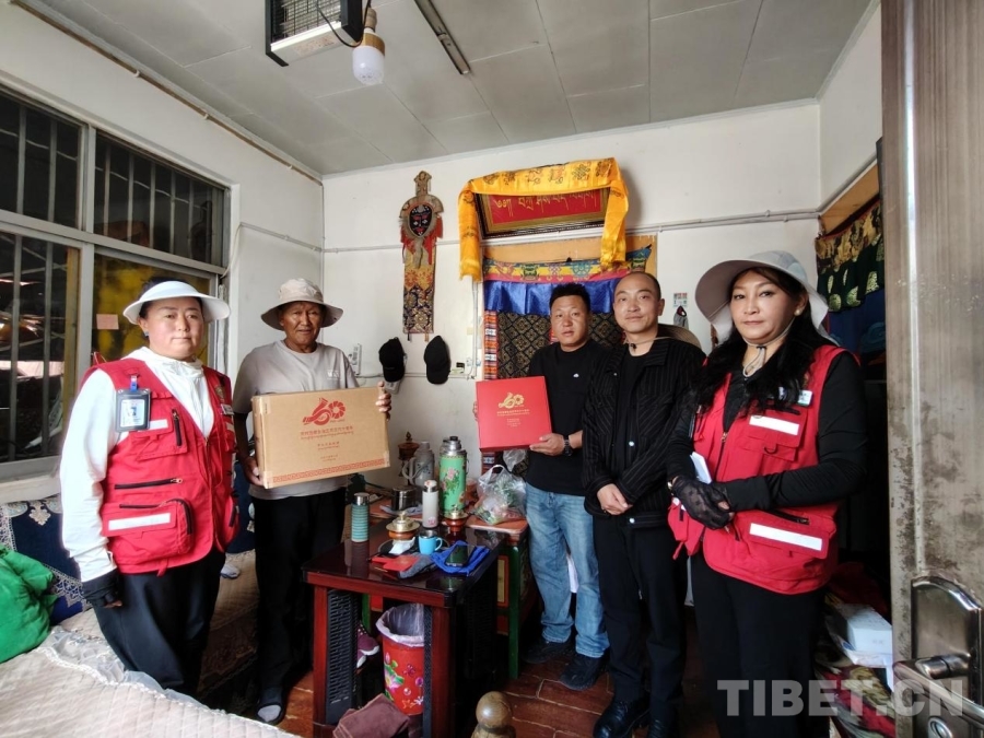 圖為八一街道吉曲雄社區(qū)居民收到中央代表團贈送的禮物 八一街道黨建辦供圖