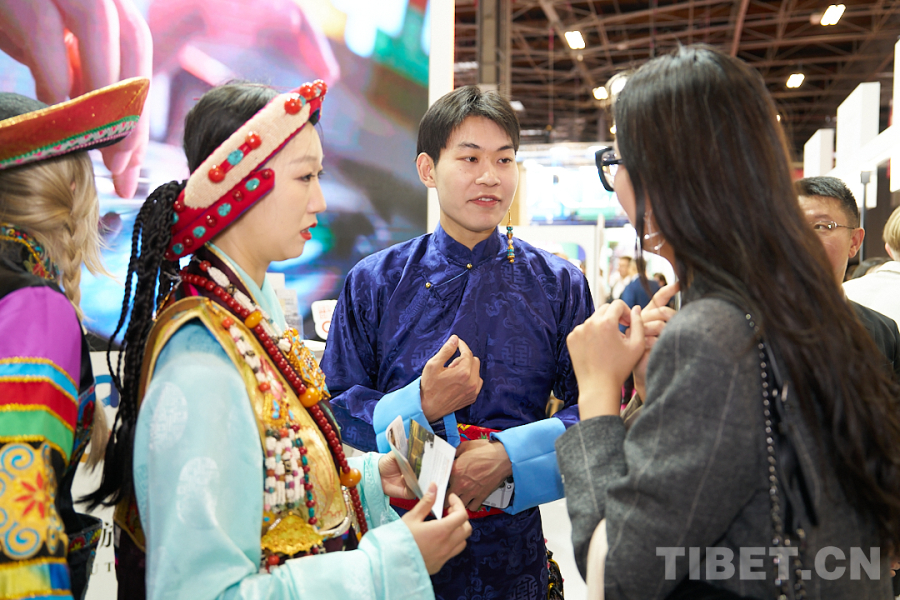 圖為2025法國巴黎國際旅游專業(yè)展上旅行商向西藏團組咨詢洽談
