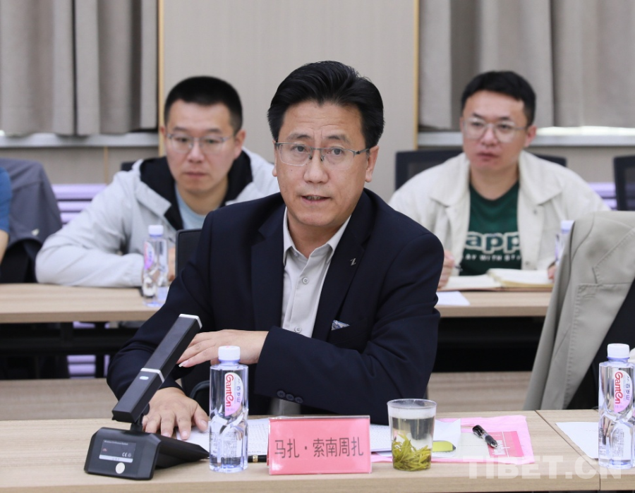 圖為馬扎·索南周扎作會(huì)議發(fā)言 攝影:劉莉