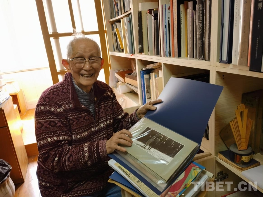 3月21日,我懷揣相冊,專程登門拜訪丁遵新先生。來到丁先生家,一壁字畫,滿屋書香。92歲高齡的先生,依舊精神矍鑠,思維敏捷。我說明來意,攤開相冊,請先生辨認(rèn)這組西藏照片是否出自他手?先生凝視著照片,一時語塞,說:“當(dāng)年湖北團(tuán)只有我一名攝影記者,這些相片肯定是我拍的?!奔又啵舷壬M(jìn)到書房翻騰了好久,終于又找出兩張當(dāng)年的西藏照片,其中一張為罕見彩色印刷品,加上我母親保存的,總計(jì)12幅。
