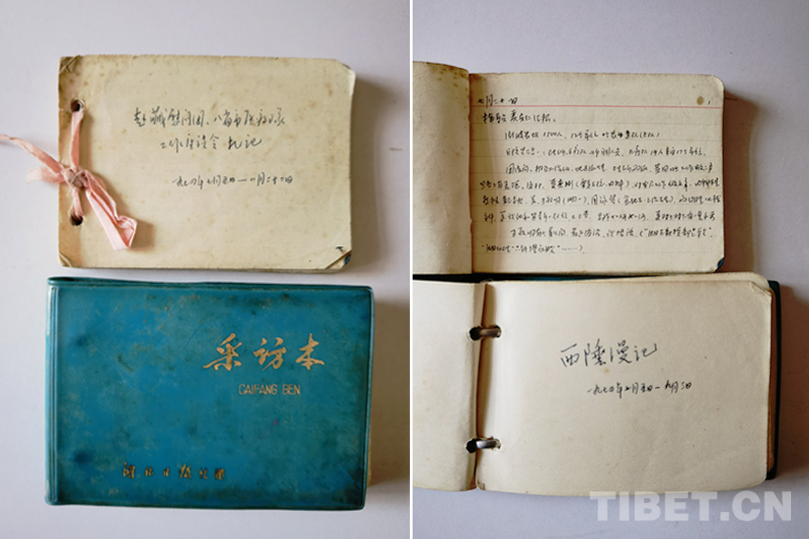 梳理完這些親手拍的片子,丁先生突然想起,他當(dāng)年赴藏寫有日記,還保存著,我大為驚訝,本能地意識到這是極珍貴的檔案資料。先生又翻書柜,找出個小本子,上面依時間順序,密密麻麻地記載著湖北團(tuán)隊(duì)幾乎每天的活動。真是難得一見的寶貝呀!經(jīng)先生同意,筆者對日記逐頁拍照,帶回家研究。