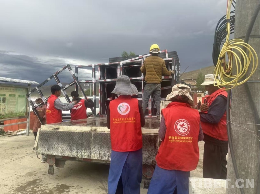 圖為志愿服務(wù)隊(duì)員們在災(zāi)后重建一線