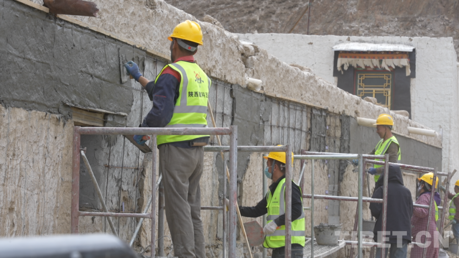 圖為日喀則市定日縣受災(zāi)民房維修加固施工