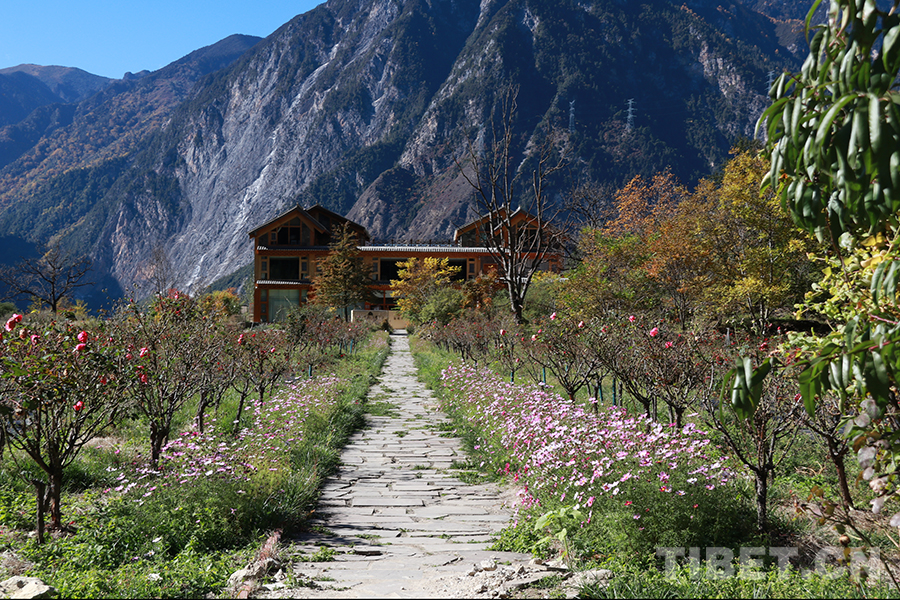 全村保留了村莊原貌,對32戶藏式古寨進(jìn)行風(fēng)貌改造,新建了停車場、人工湖、民宿等設(shè)施。在這里看不見一根電線桿,因?yàn)槿濉拔寰€下地”。房屋和道路邊都種樹栽花,村容村貌更顯世外桃源般的優(yōu)雅閑適。