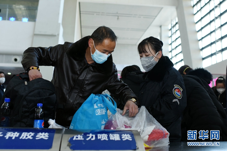 圖為西寧站內正在維護秩序的保安。新華網 李俊 攝